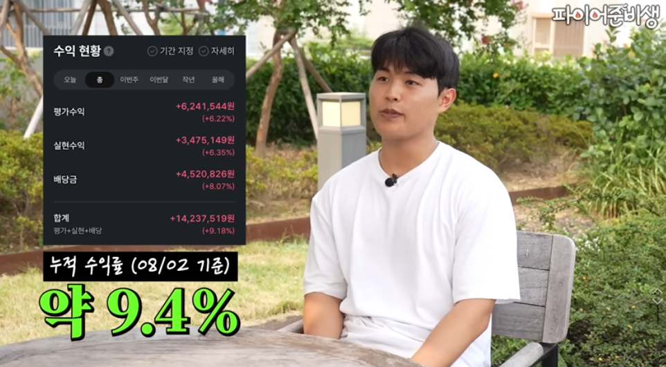 24세 직장인 '썬업' 님의 1억 달성기 한 유튜브 채널의 영상에 등장한 24세 직장인 '썬업'님은 포스코 광양제철소에서 근무하며 높은 소득을 바탕으로 1억 원이 넘는 자산을 모았습니다. 근무량에 따라 월 400~500만 원 이상의 수입을 얻고 있으며, 2025년 7월 기준으로 받은 배당금만 세후 약 190만 원에 달합니다. 그의 투자 포트폴리오는 주로 ETF에 집중되어 있으며, 과거의 투자 실패를 통해 '정신적으로 건강한 투자'를 추구하게 되었다고 밝혔습니다. 특히 배당주의 매력으로 하락장에서의 심리적 안정감을 꼽으며, 배당금을 재투자해 복리 효과를 노리는 전략을 사용하고 있습니다. 그의 구체적인 목표는 29세에 총 자산 3억 원, 39세에 10억 원, 49세에 30억 원을 달성하는 것입니다.